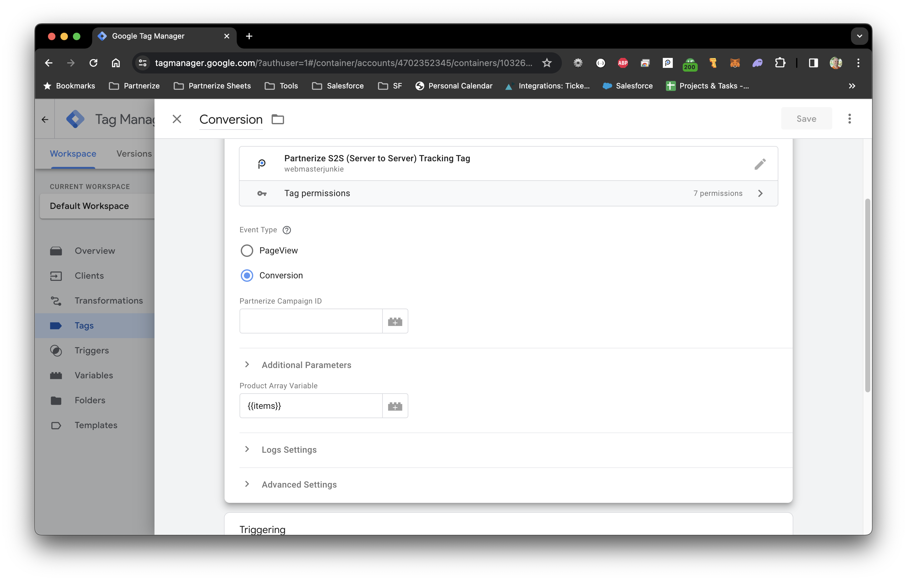 - Partnerize S2S (Server to Server) Tracking Tag - Handles both the client and conversion events in one template given the ease of implementation